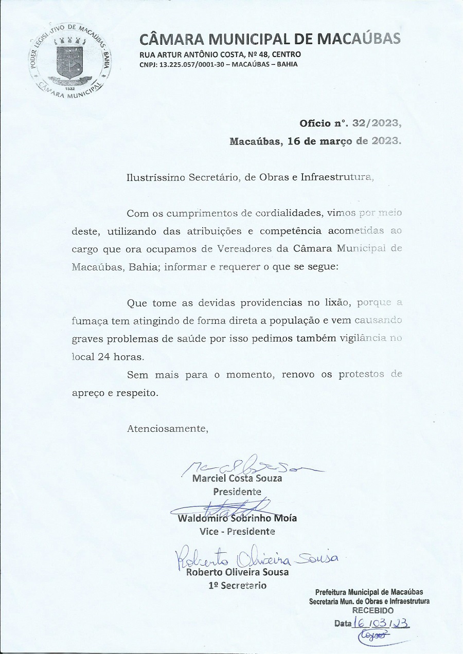 Na manhã desta quinta-feira, 16 de novembro de 2023, após a Sessão Ordinária os vereadores foram até o lixão de Macaúbas, acompanhar de perto um dos maiores problemas do município, a poluição gerando no local, principalmente devido a fumaça que vem afetando a população da sede.