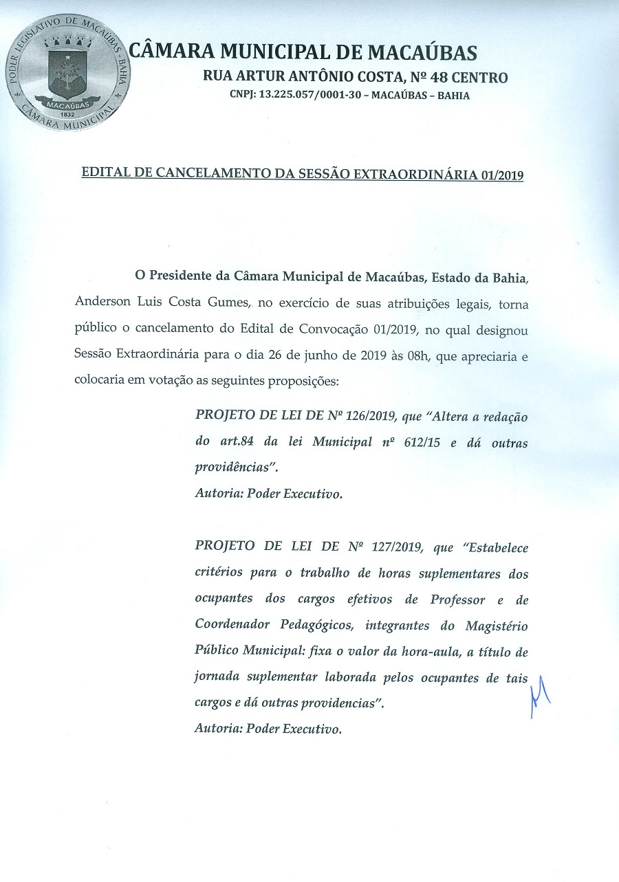 CÂMARA DIVULGA EDITAL DE CANCELAMENTO DA SESSÃO EXTRAORDINÁRIA QUE SERIA REALIZADA NO DIA 26 DE JUNHO 2019 por CMM | jun 21, 2019 | Câmara, Notícias, Prefeitura, Sessões | 0 Comentários VEJA O EDITAL ABAIXO: EDITAL DE CANCELAMENTO DA SESSÃO EXTRAORDINÁRIA QUE SERIA REALIZADA NO DIA 26 DE JUNHO 2019 Compartilhar Enviar Comentário Cancelar respostaO seu endereço de e-mail não será publicado. Campos obrigatórios são marcados com *Comentário * Nome * E-mail * Site Δ