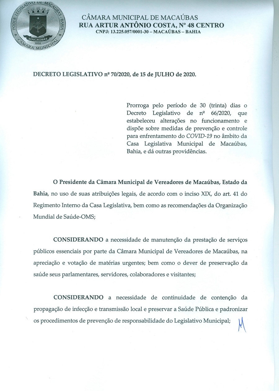 COVID-19: DECRETO LEGISLATIVO Nº 70/2020 PRORROGA PELO PERÍODO DE 30 DIAS O DECRETO Nº 66/2020 por CMM | jul 28, 2020 | Câmara, Notícias, Prefeitura | 0 Comentários VISUALIZAR DECRETO EM PDF Compartilhar Enviar Comentário Cancelar respostaO seu endereço de e-mail não será publicado. Campos obrigatórios são marcados com *Comentário * Nome * E-mail * Site Δ