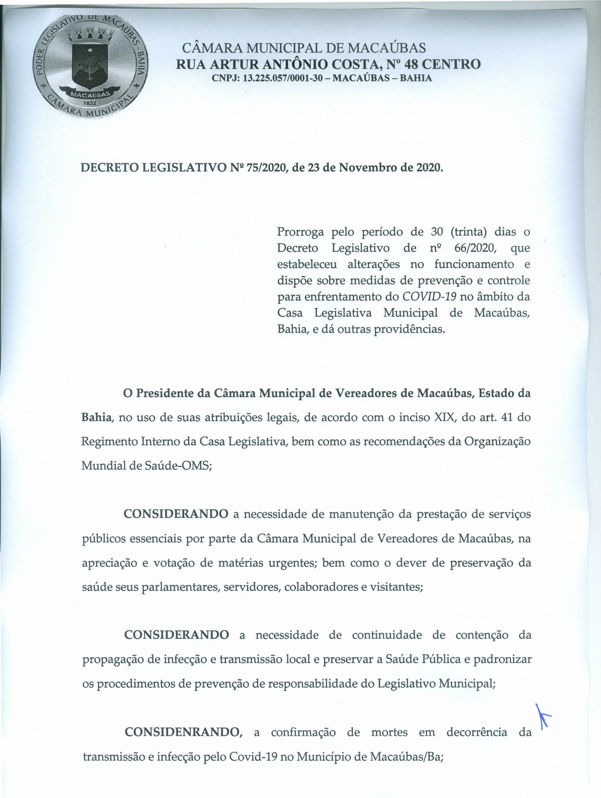 COVID-19: DECRETO LEGISLATIVO Nº 75/2020, DE 23 DE NOVEMBRO DE 2020 por CMM | nov 25, 2020 | Câmara, Notícias | 0 Comentários VEJA O DECRETO EM PDF Compartilhar Enviar Comentário Cancelar respostaO seu endereço de e-mail não será publicado. Campos obrigatórios são marcados com *Comentário * Nome * E-mail * Site Δ