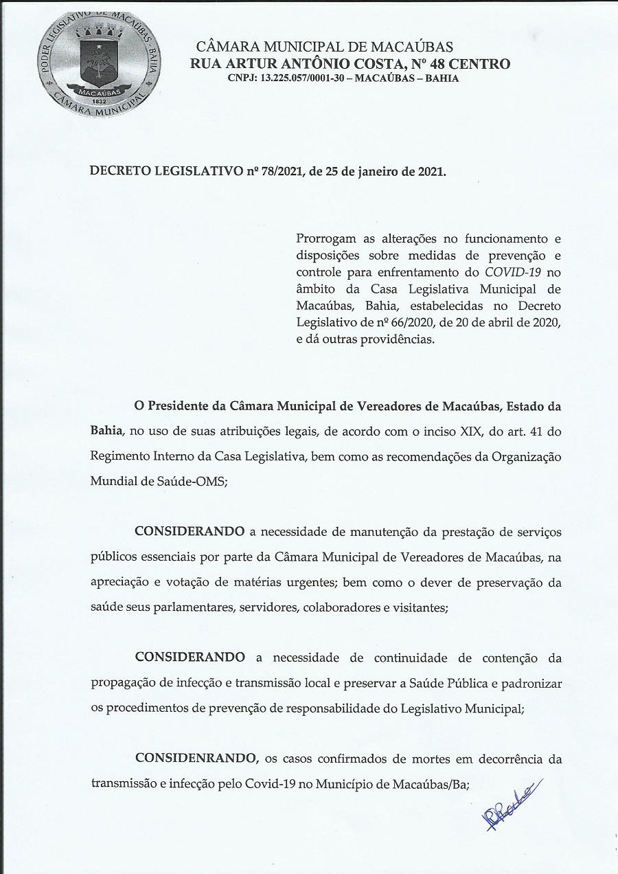 COVID-19: DECRETO LEGISLATIVO Nº 78/2021, DE 25 DE JANEIRO DE 2021 por CMM | jan 27, 2021 | Câmara, Notícias | 0 Comentários BAIXAR EM PDF Compartilhar Enviar Comentário Cancelar respostaO seu endereço de e-mail não será publicado. Campos obrigatórios são marcados com *Comentário * Nome * E-mail * Site Δ